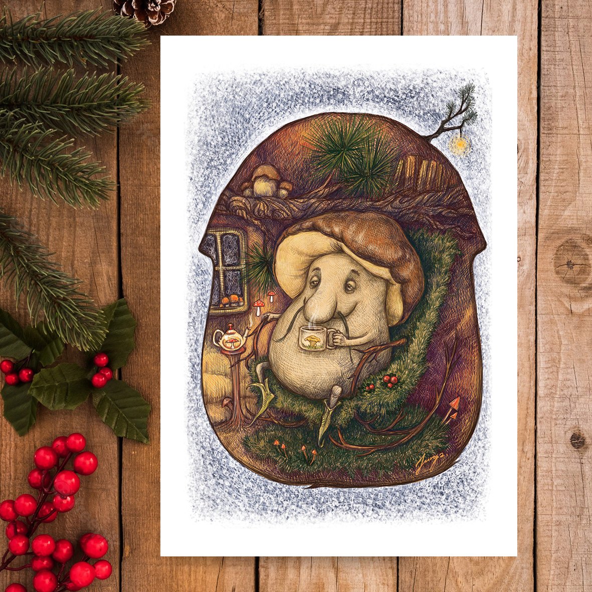 ✉️ 2. Atvirukas „Kalėdinis baravykas“