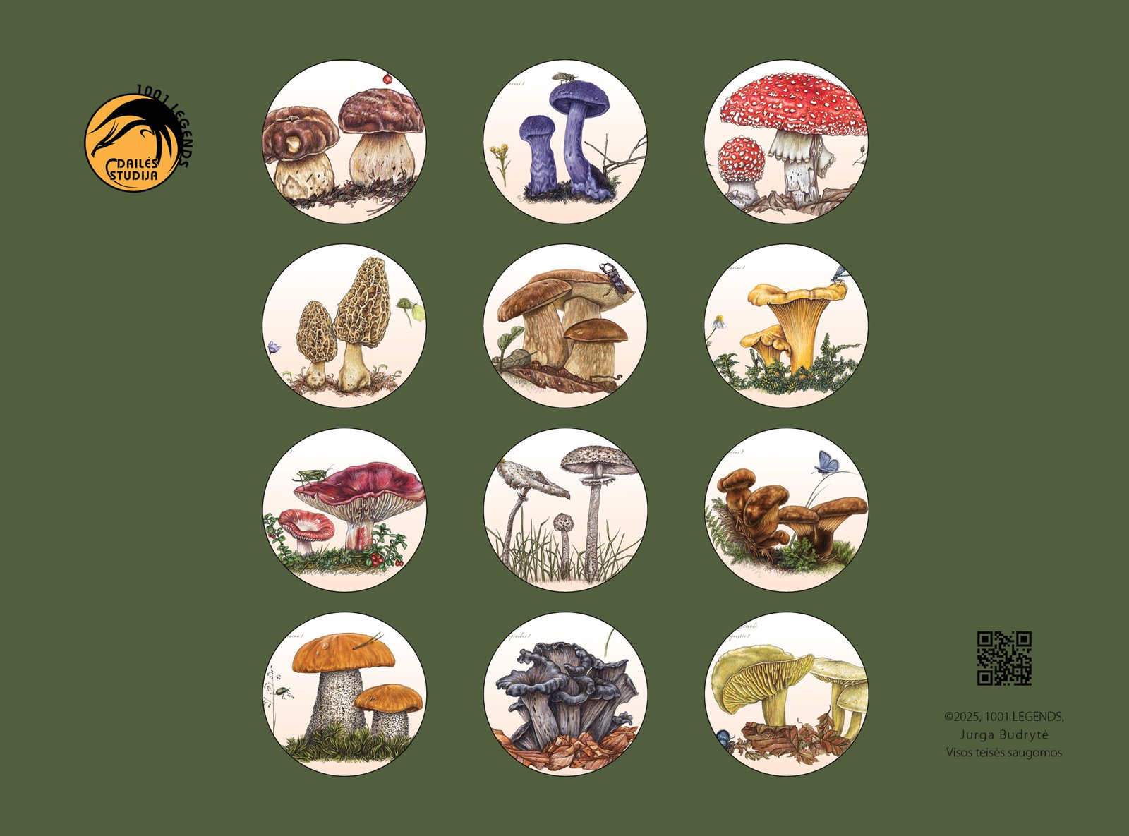 🍄 1. Kalendorius „Grybai“ – 12 originalių botaninių iliustracijų 📆