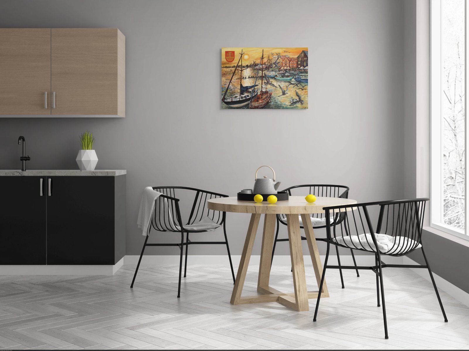 Tai paveikslas apie laisvę, horizontą ir grįžimą – apie miestą, kuris visada gyvena žvilgsniu į jūrą. „Klaipėda“ puikiai tinka interjerams, ieškantiems šviesos, judesio ir jūrinio charakterio.
