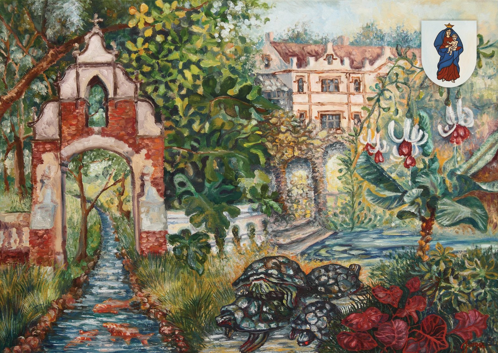 Kompozicija alsuoja gyvybe ir švelnumu: augalijos gausa, vandens tėkmė ir architektūriniai fragmentai susilieja į pasakišką, beveik sapnišką vaizdą. Detalės kviečia sustoti, tyrinėti ir pajusti Kretingos dvasią – miestą, kuriame istorija gyvena lėtai ir tyliai, per gamtą, parkus ir dvaro atmintį.