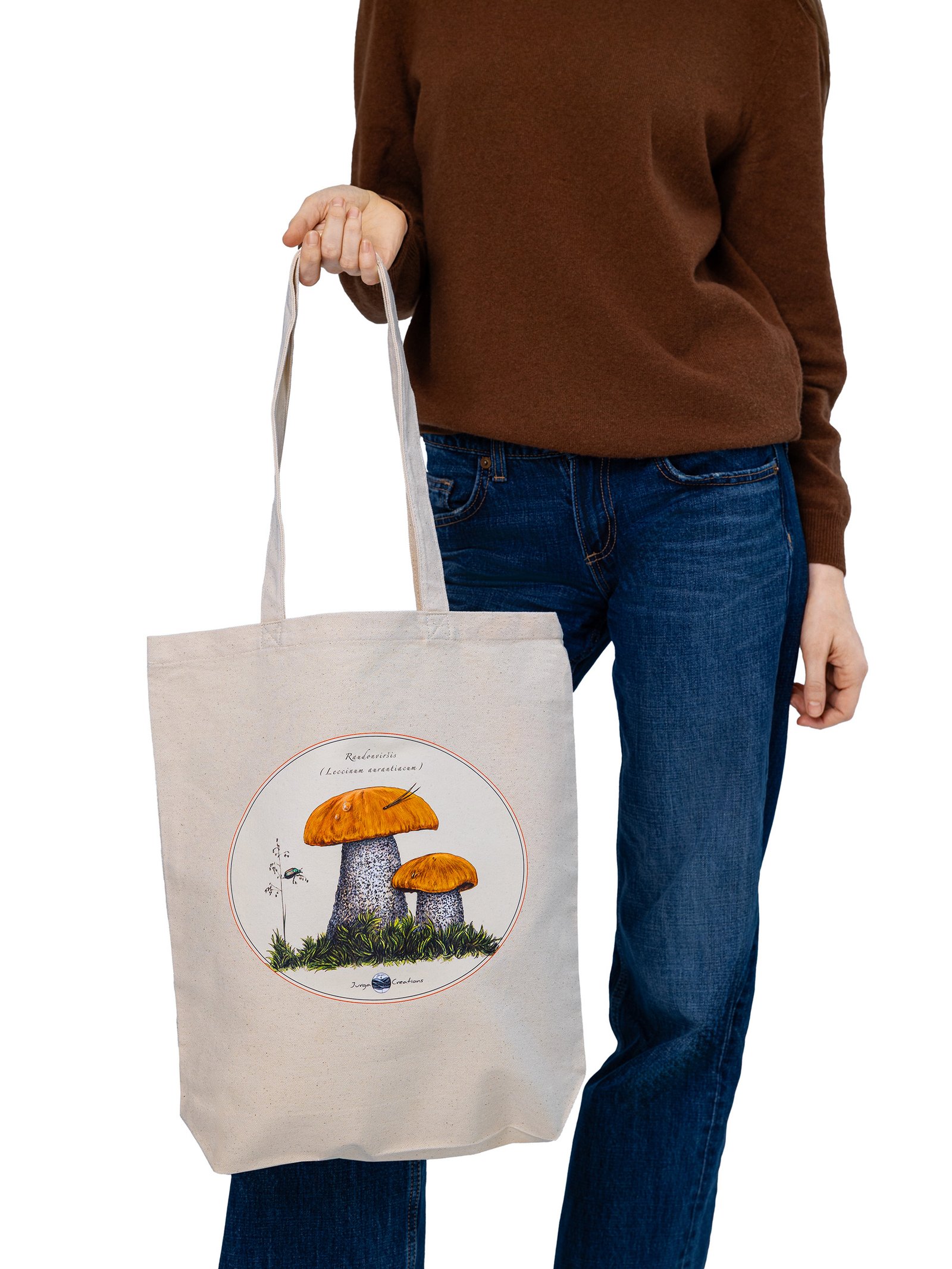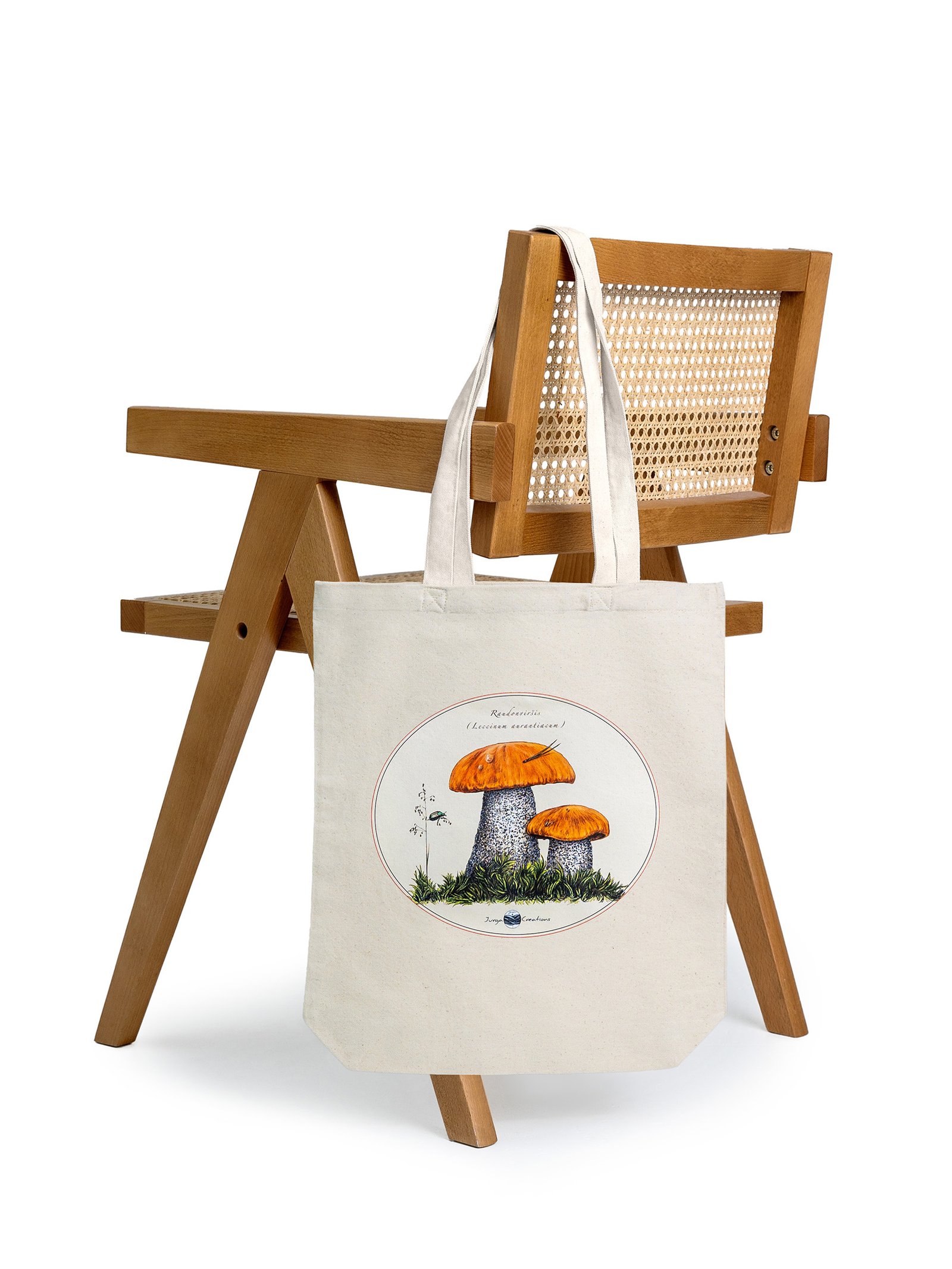 Natūralaus drobinio audinio maišelis dekoruotas autoriniu piešiniu – raudonviršiu (Leccinum aurantiacum), išsiskiriančiu savo oranžine kepurėle ir stipriu siluetu. Tai grybas, kuris dažnai pasirodo netikėtai, bet visada pradžiugina – kaip ir šis ryškus akcentas tavo kasdienybėje.